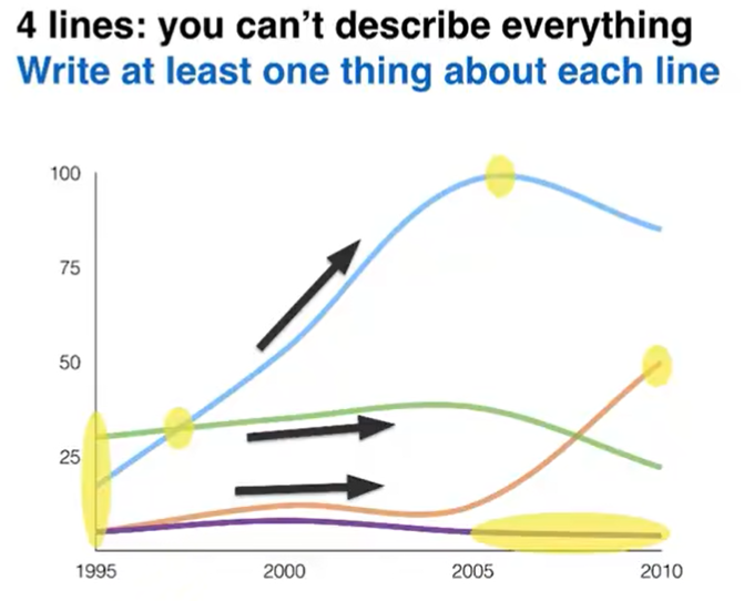 Second, compare the lines at specific points(details paragraphs, Paragragh 3&4),第一年的描述、峰值、趋势、稳定期