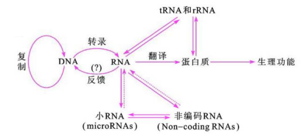 DNA是遗传信息的载体,它通过转录生成信使RNA(mRNA),翻译生成蛋白质的过程来控制生命现象。