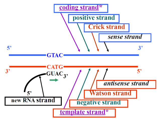 基因(mRNA)的方向就是编码链(coding strand; sense strand)的方向