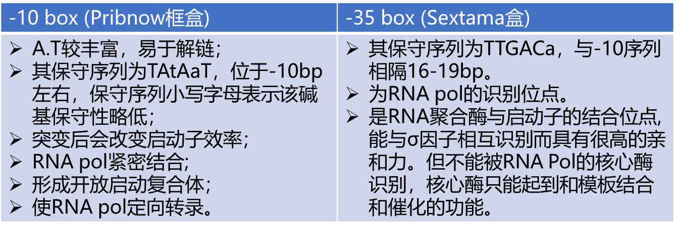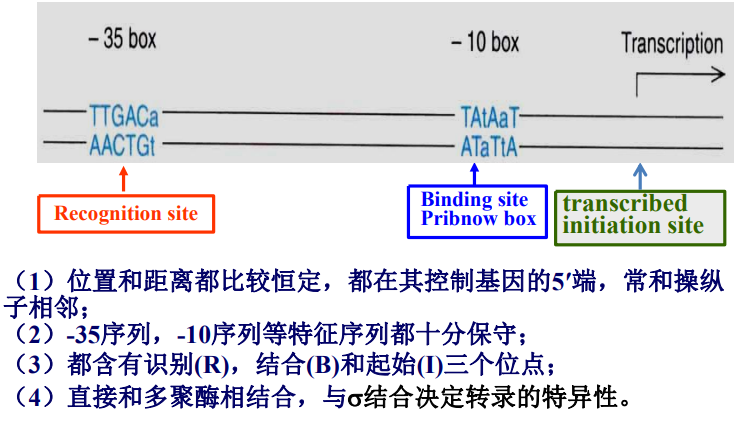 在原核生物中, -10区和-35区的最佳距离大约是16~19 bp,过大或过小都会降低转录活性。这可能是与RNA Pol本身的大小和空间结构有关。