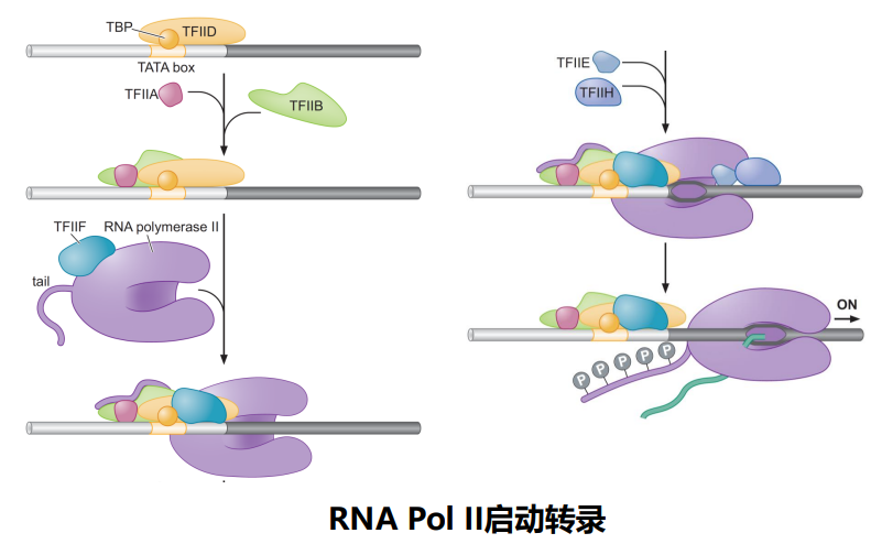 (3)通过阅读启动子序列,RNA聚合酶确定转录方向和模板链