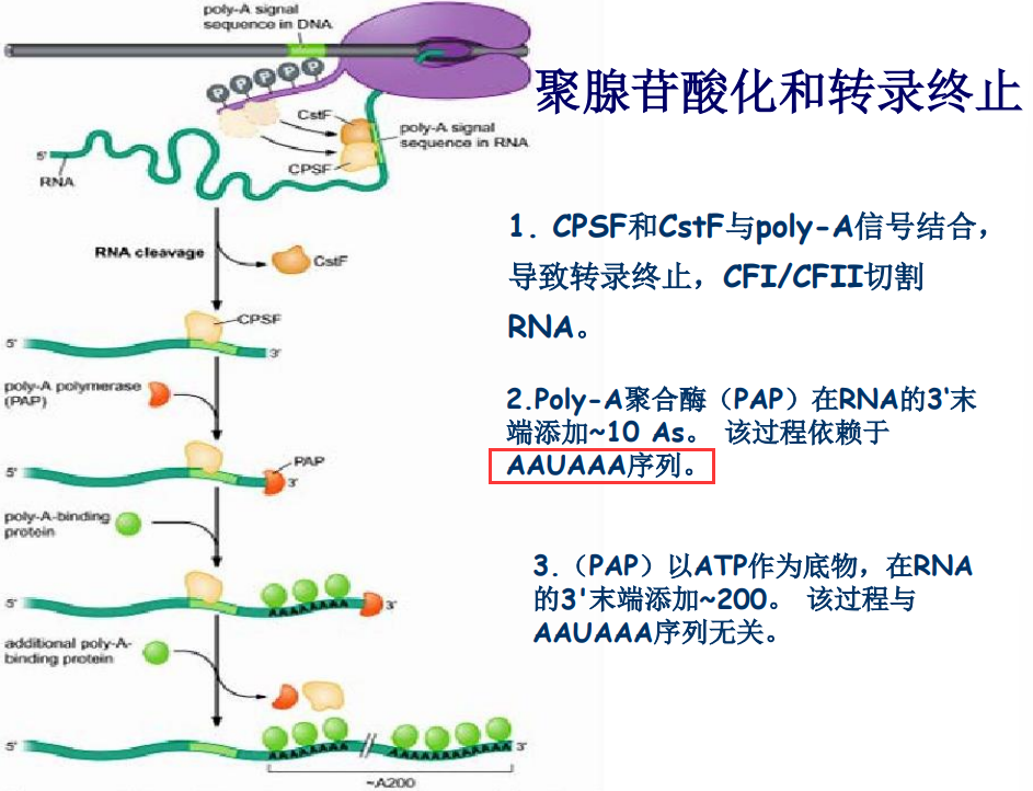 2、pre-mRNA的加多聚(A) 尾巴过程