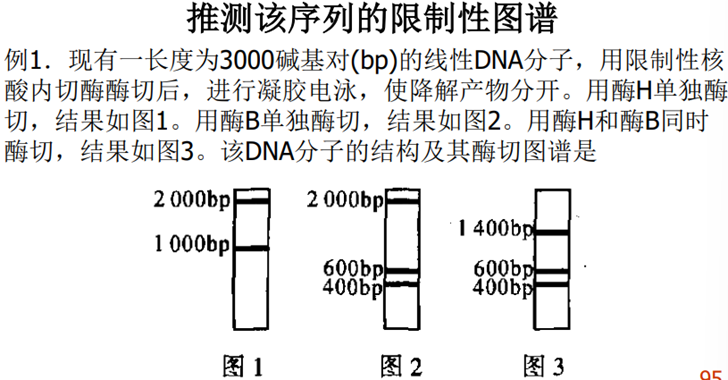 原理:比较一条DNA分子被不同限制性内切酶切割所产生的片段大小,确定酶切位点的相对位置。